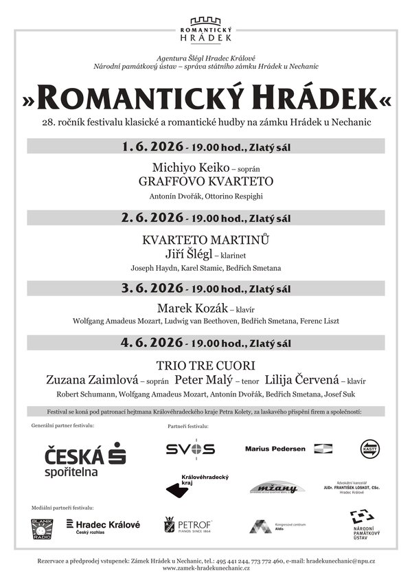 Hudební festival Romantický Hrádek se koná pod patronací hejtmana Královéhradeckého kraje,